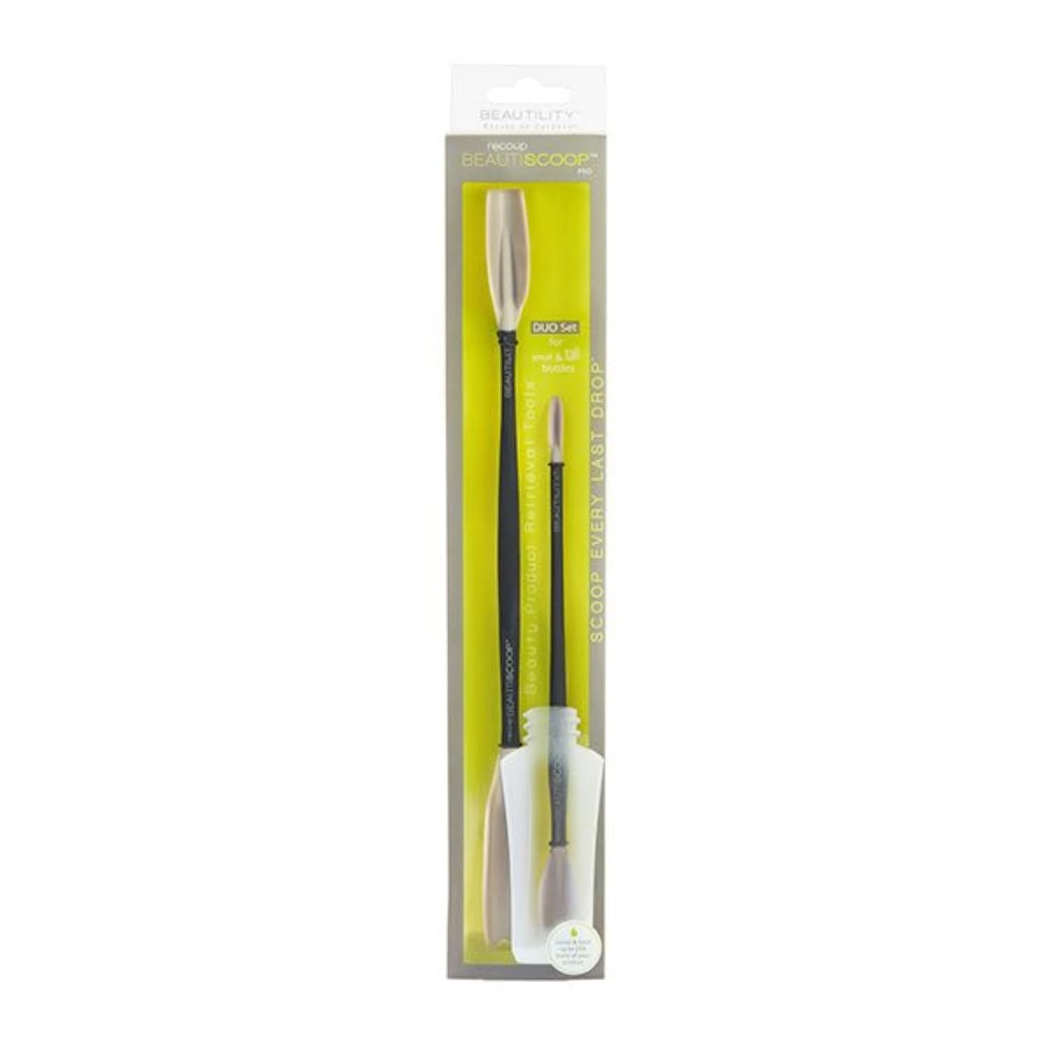 - The Ultimate Beauty Tool: This dual-scoop beauty tool is a must-have for every woman’s beauty arsenal. The recoup BEAUTISCOOP’s Dual Scoops fit into the narrow openings of the smallest-to-tallest containers to reach every drop you paid for of your favorite products.