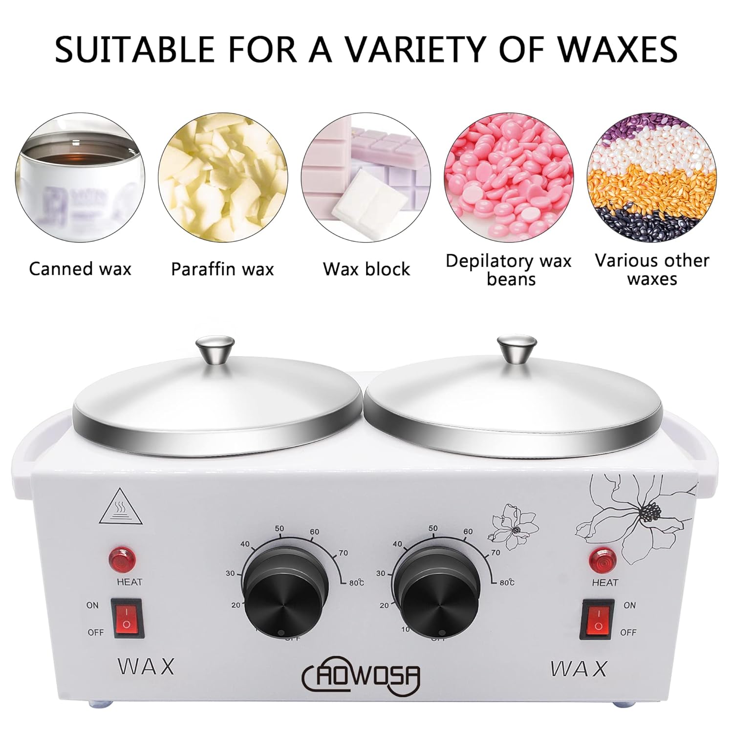 - 【Powerful Heating System】AOWOSA Double Wax Warmer combines both fast heating and overheating protection. It only takes 10-15 minutes to melt the wax in the pot. When the temperature in the pot reaches the temperature of your choice, it automatically stops heating to prevent overheating and burning. When the temperature in the pot drops, it automatically turns on the heating so that the wax in the pot is always in the state you want.