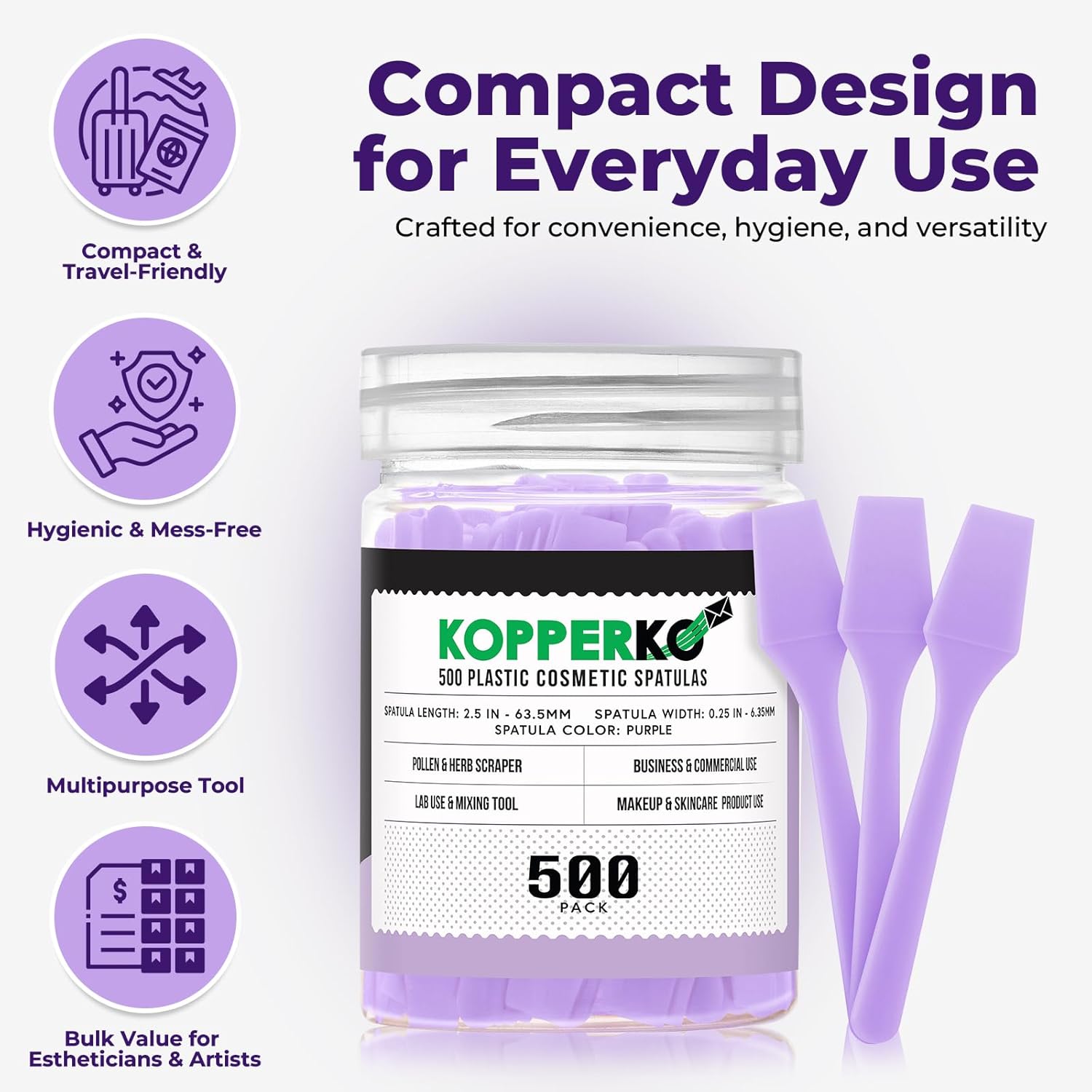 - Clean Out Your Containers: Maximize product use with our 500 pack of 0.25"x2.5" disposable cosmetic plastic spatulas. Easily extract creams, lotions, or makeup from containers, even in tight spaces, without getting product under your nails