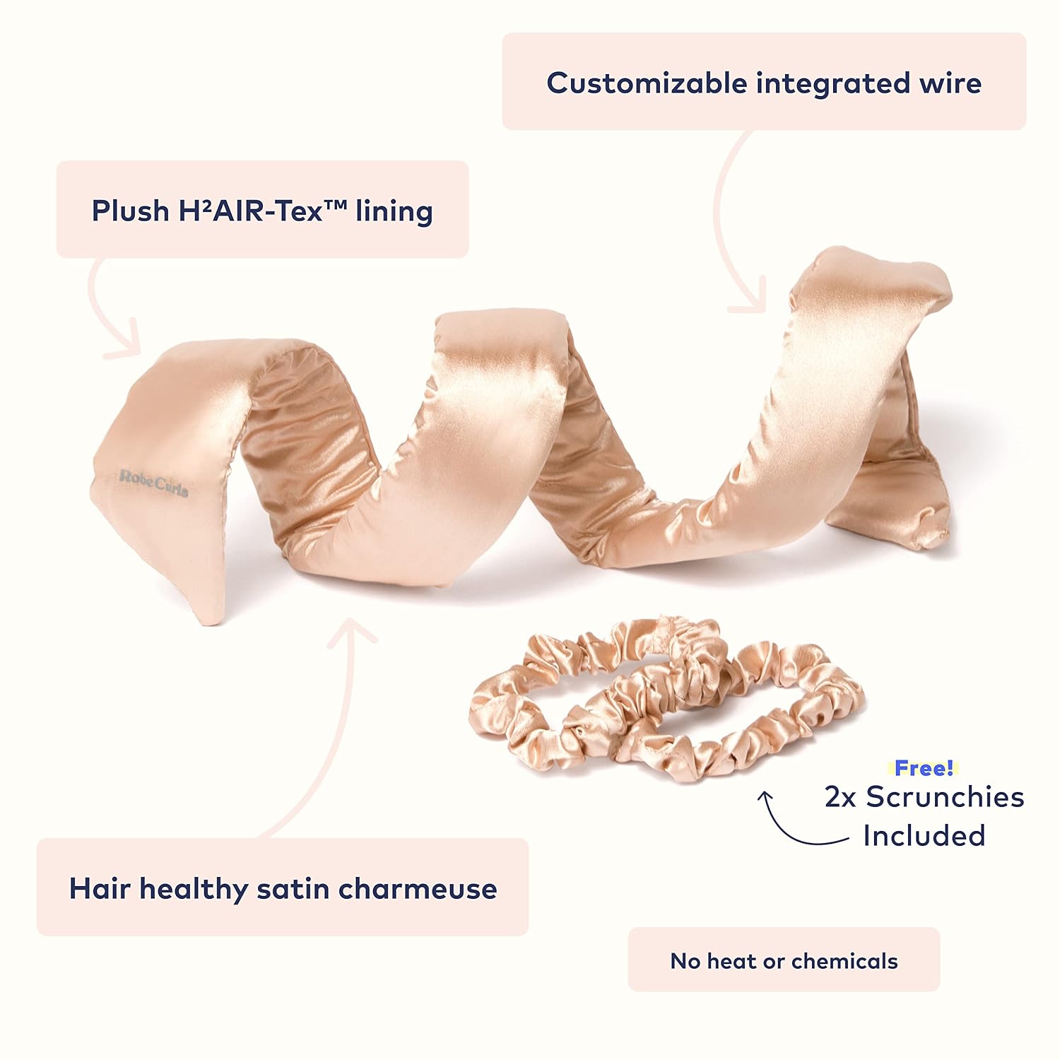 - Heatless Hair Curler: Achieve beautiful, silky curls without heat damage using the RobeCurls Heatless Hair Curler Set. Our innovative satin headband creates long-lasting curls while preserving your hair's health and shine. Say goodbye to traditional curling irons and hello to healthy, effortless curls.