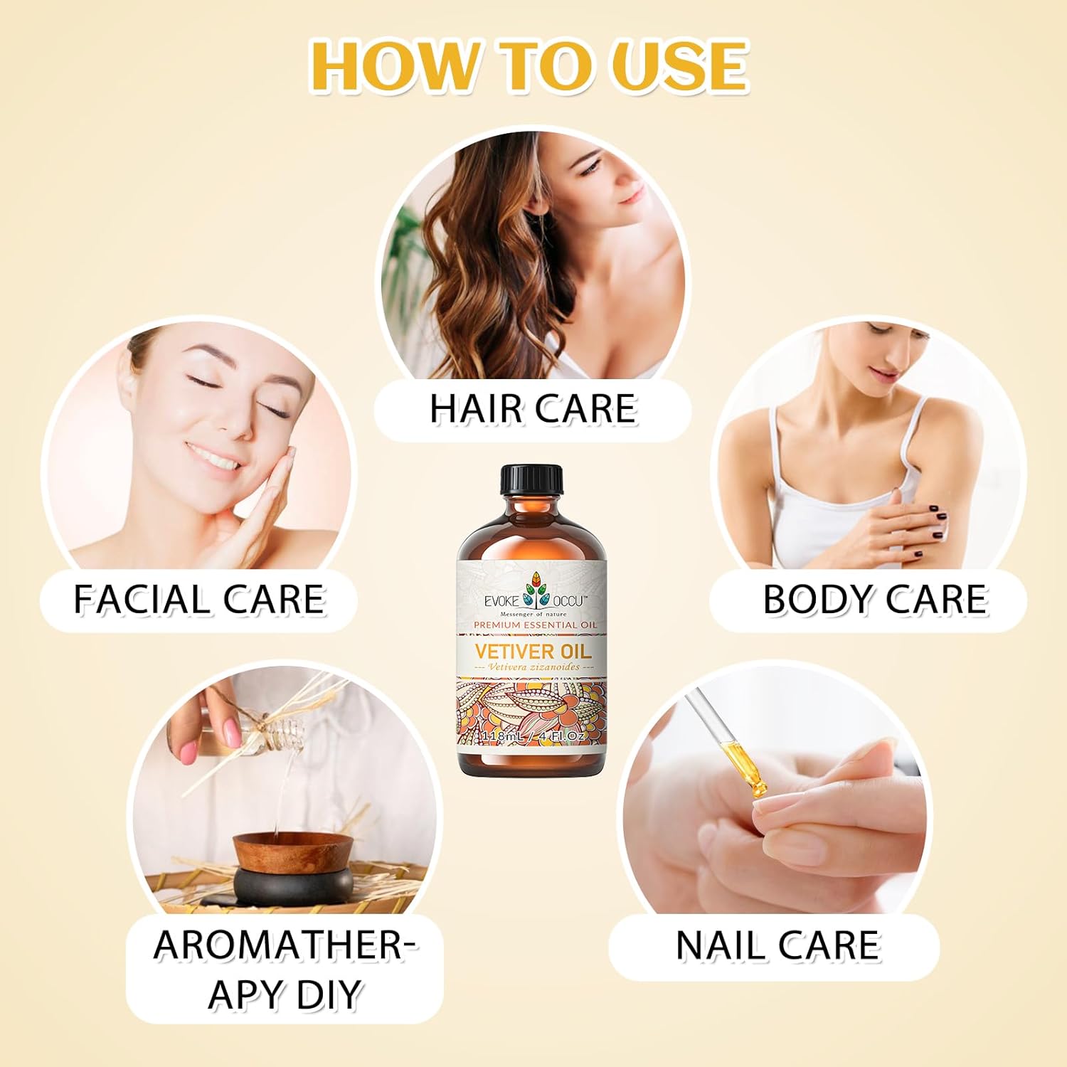 EVOKE OCCU Pure & Natural Vetiver Essential Oil for Skin, DIY, Candle and Soap Making - 4 Fl Oz