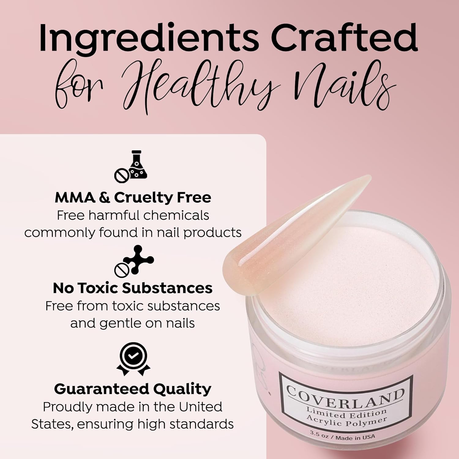 - βοΈππππ ππππππππ πππππ: The flexibility and adhesion properties of Coverland colored acrylic nail powder make it easy to shape nails with precision, and offers nice control for professionals who prefer to work with a polymerization rate of moderate to fast.