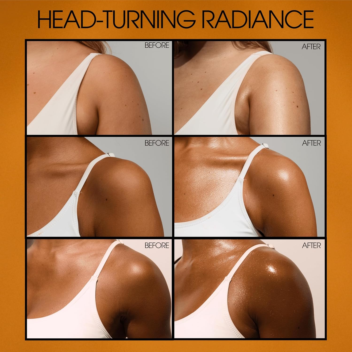 - RADIANT BODY GLOW: A flattering gold shade enhances all skin tones, with no white cast. The dermatologist-approved shimmering body oil is PEG & Paraben free, Hawaii 104 Reef Act Compliant, vegan, and cruelty-free.