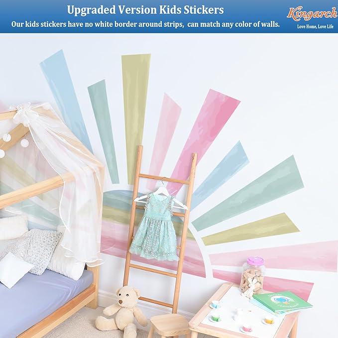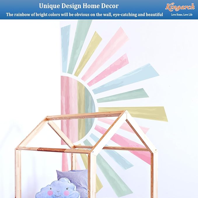 Large Boho Half Sun Wall Decals, Sunshine Peel and Stick Fabric Nursery Wall Decor, Removable Home Room Decor Murals Stickers for Kids Girls Toddler Bedroom Living Room Playroom