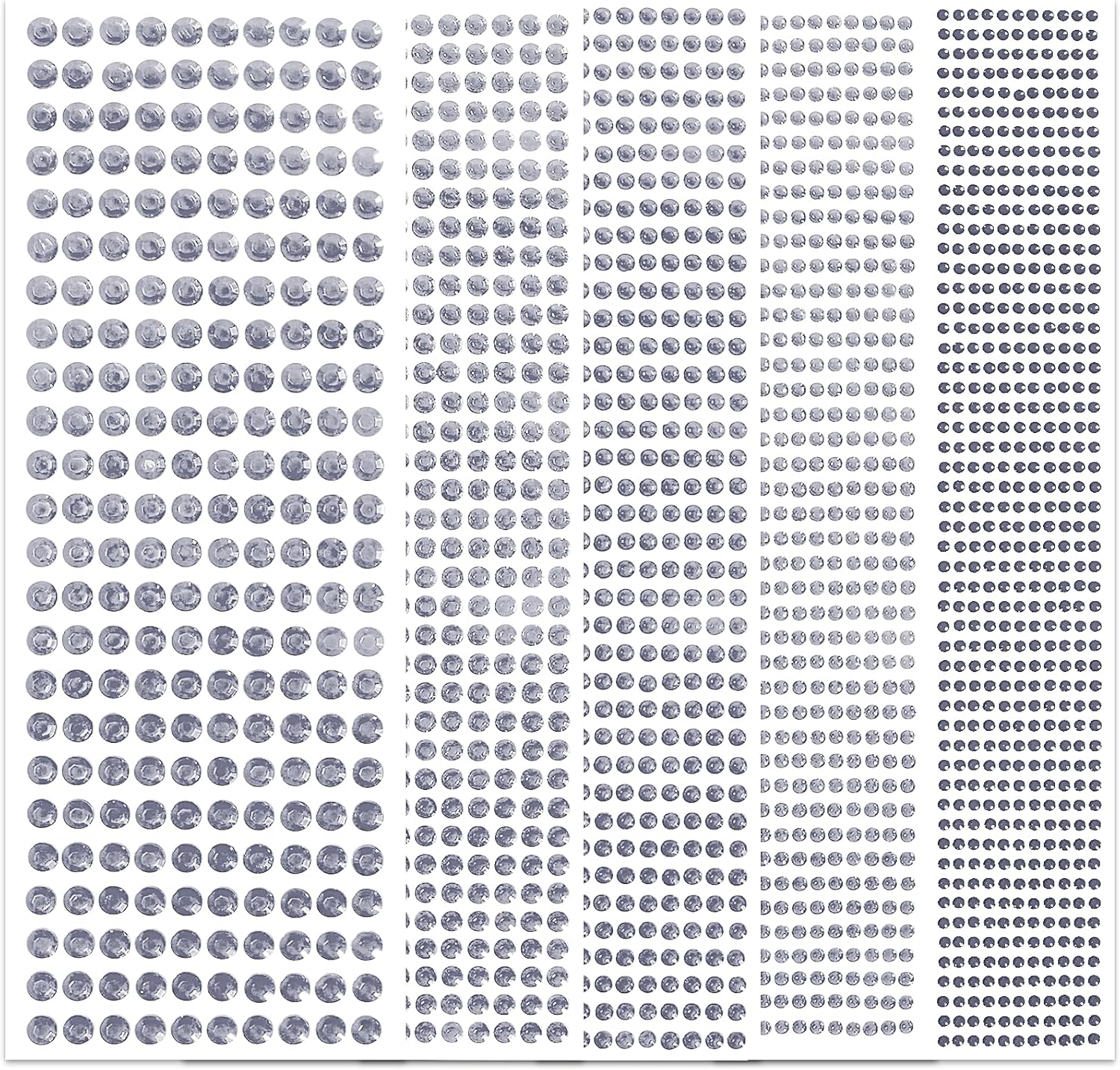 - π[ Value Set ] Package contains 5 sheets rhinestone stickers, 3555 pieces nail gems in 5 sizes, including 1325pcs of 3mm, 840pcs of 4mm, 646pcs of 5mm, 504pcs of 6mm, 240pcs of 8mm, enough to meet your various makeup and craft projects needs.