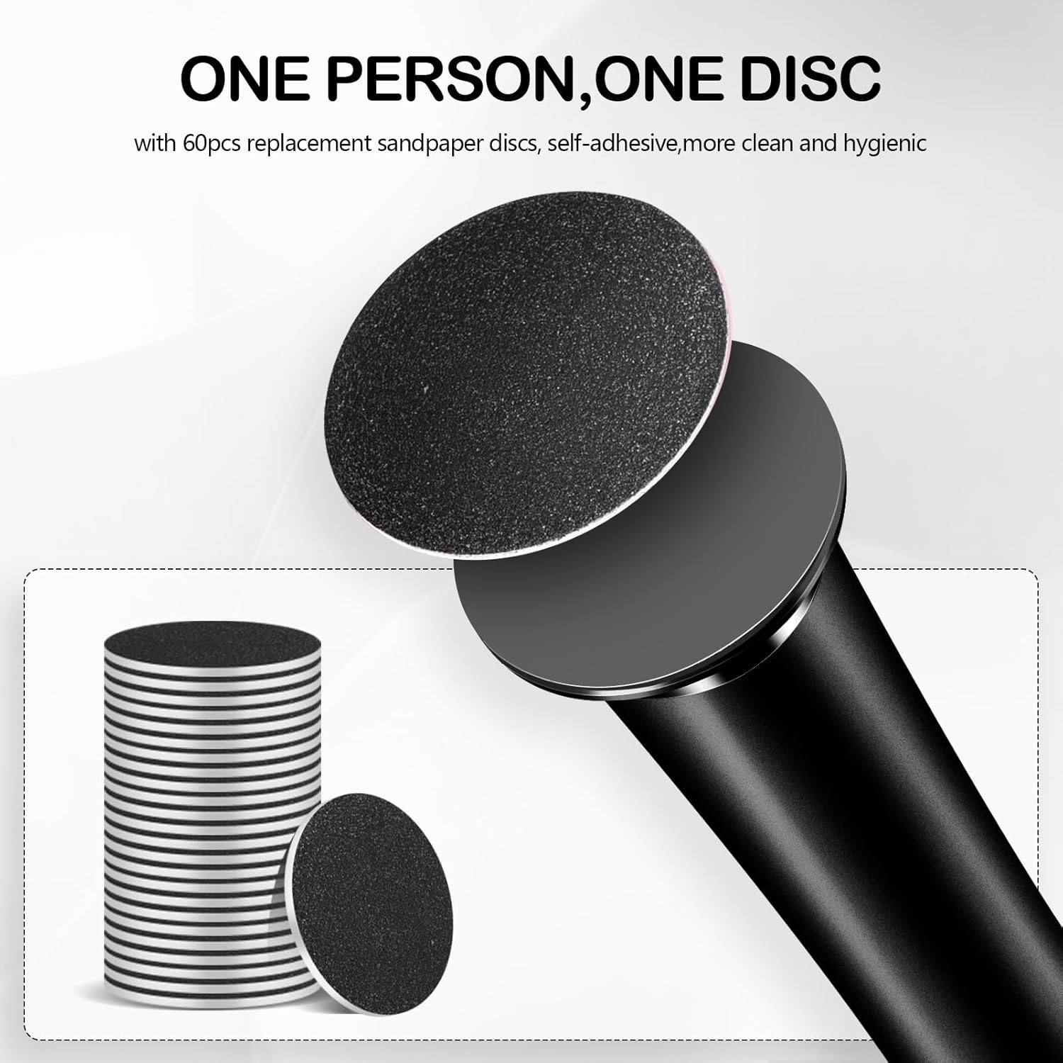 - ONE EXPENSES AND FAMILY USE :with 60pcs self-adhesive replaceable sandpaper discs,our foot sander is suitable for the whole family or nail&foot salon.One person one disc,clean and hygienic.also saving money and more healthy.