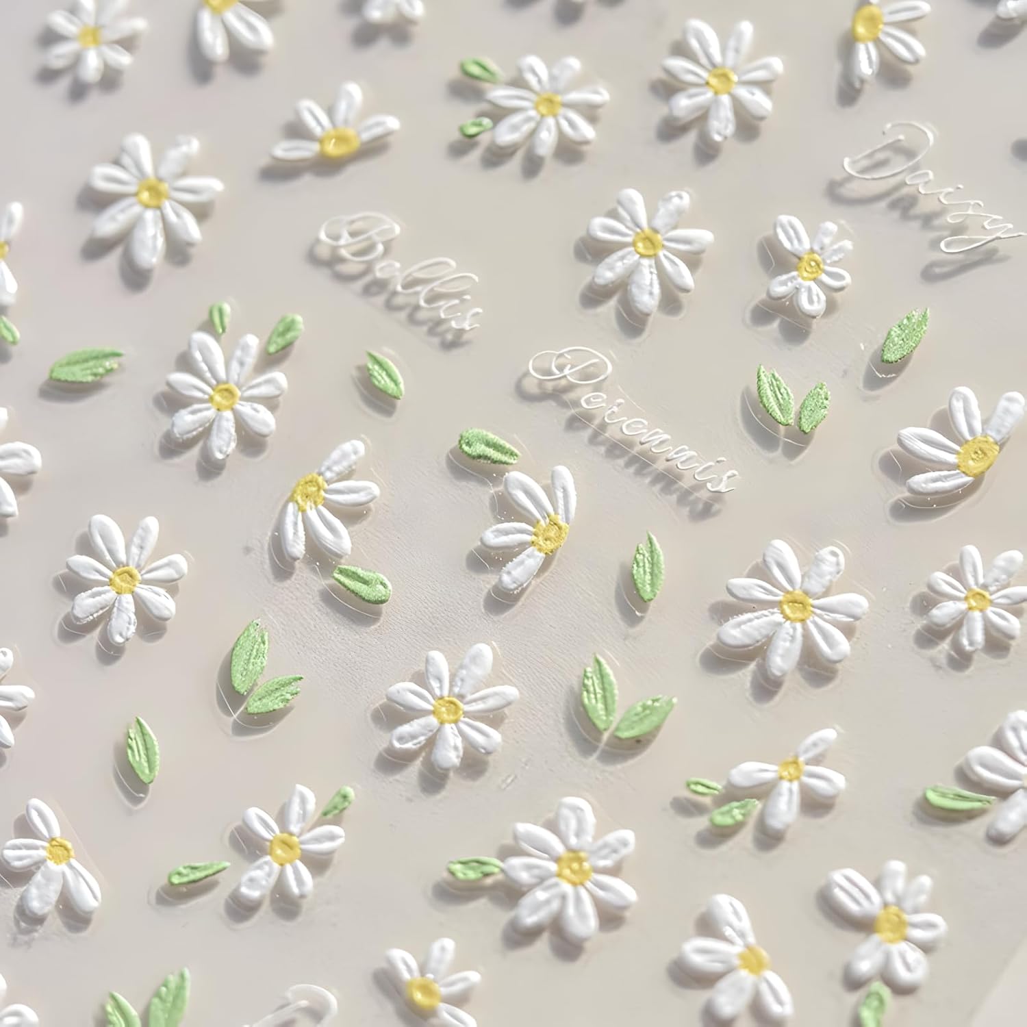 Flower Nail Art Stickers 5D Embossed Self Adhesive Spring Summer Nail Stickers for Nail Art Cute White Daisy Nail Decals Flower Nail Design Decoration Accessories for Women and Girls