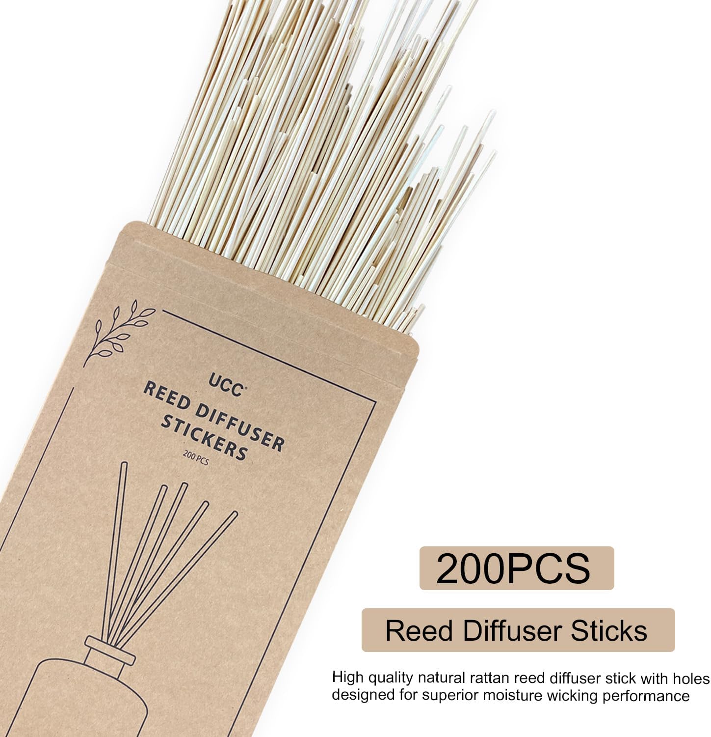 UCC 200PCS Reed Diffuser Sticks, 10 Inch Natural Rattan Sticks for Essential Oil, Premium Scented Oil Sticks, Aroma Replacements Refill Sticks for Aromatherapy, Home Fragrance, and DIY Crafts
