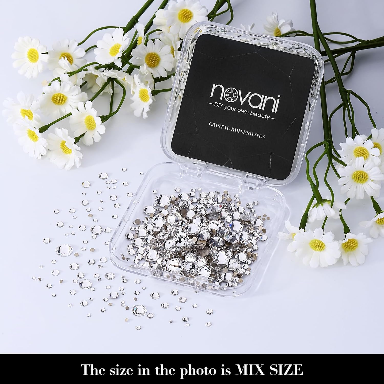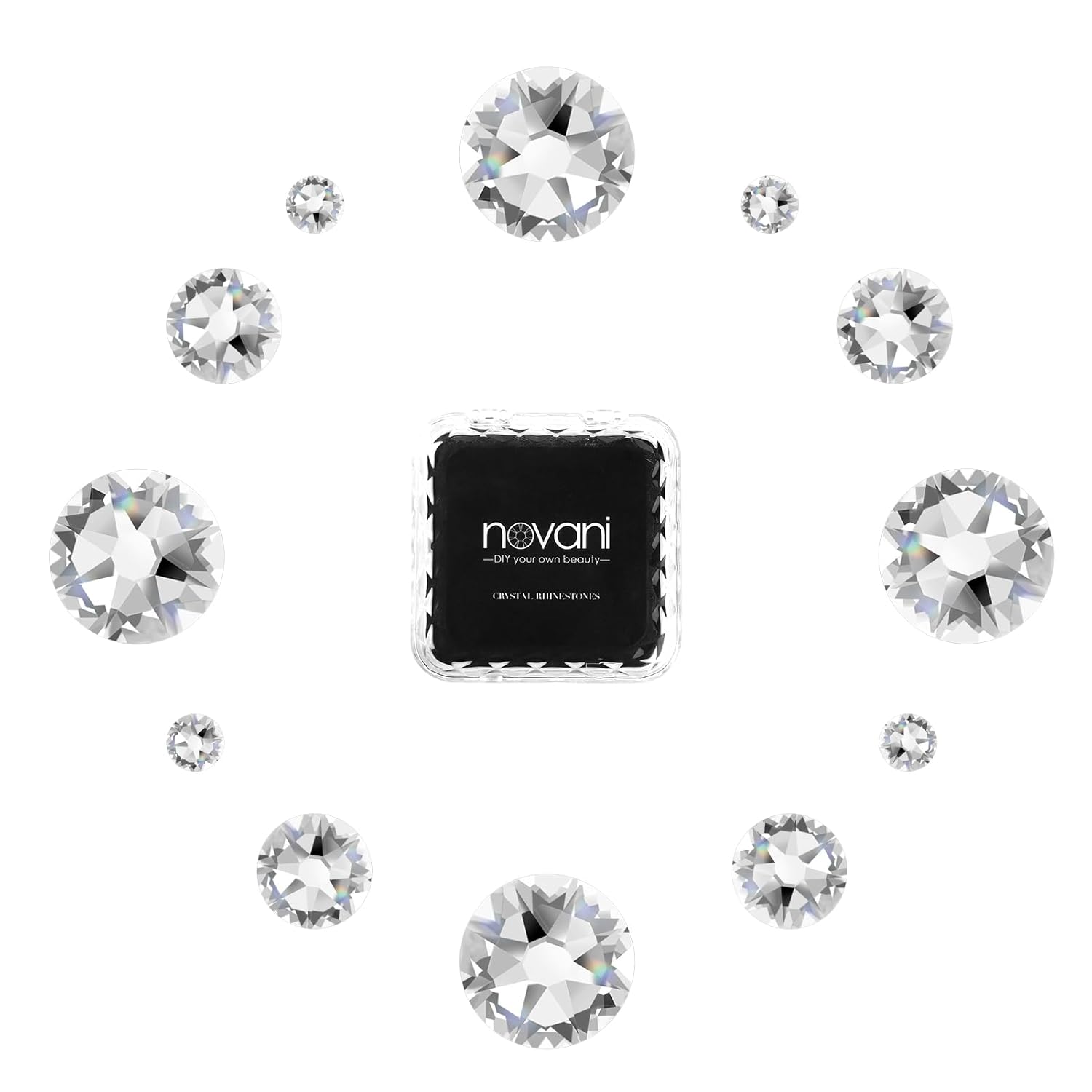 Novani Clear Rhinestones Flat Back Round Rhinestone Style 2088 Sparkly Crystal Gemstones for Nail Art and Crafting,Mix Size(SS6-SS40)