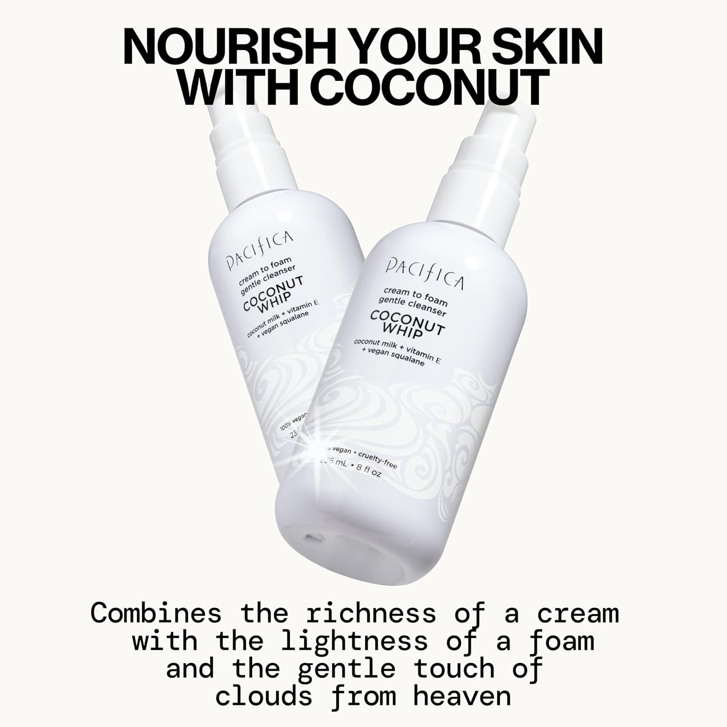 - Cream-to-Foam Lather Experience – Enjoy a unique cleansing experience that starts as a rich cream and transforms into a delicate foaming face wash. This coconut whip cleanser creates a lush lather that thoroughly cleanses away dirt, excess oil, and daily buildup, all while feeling indulgent and gentle on the skin.
