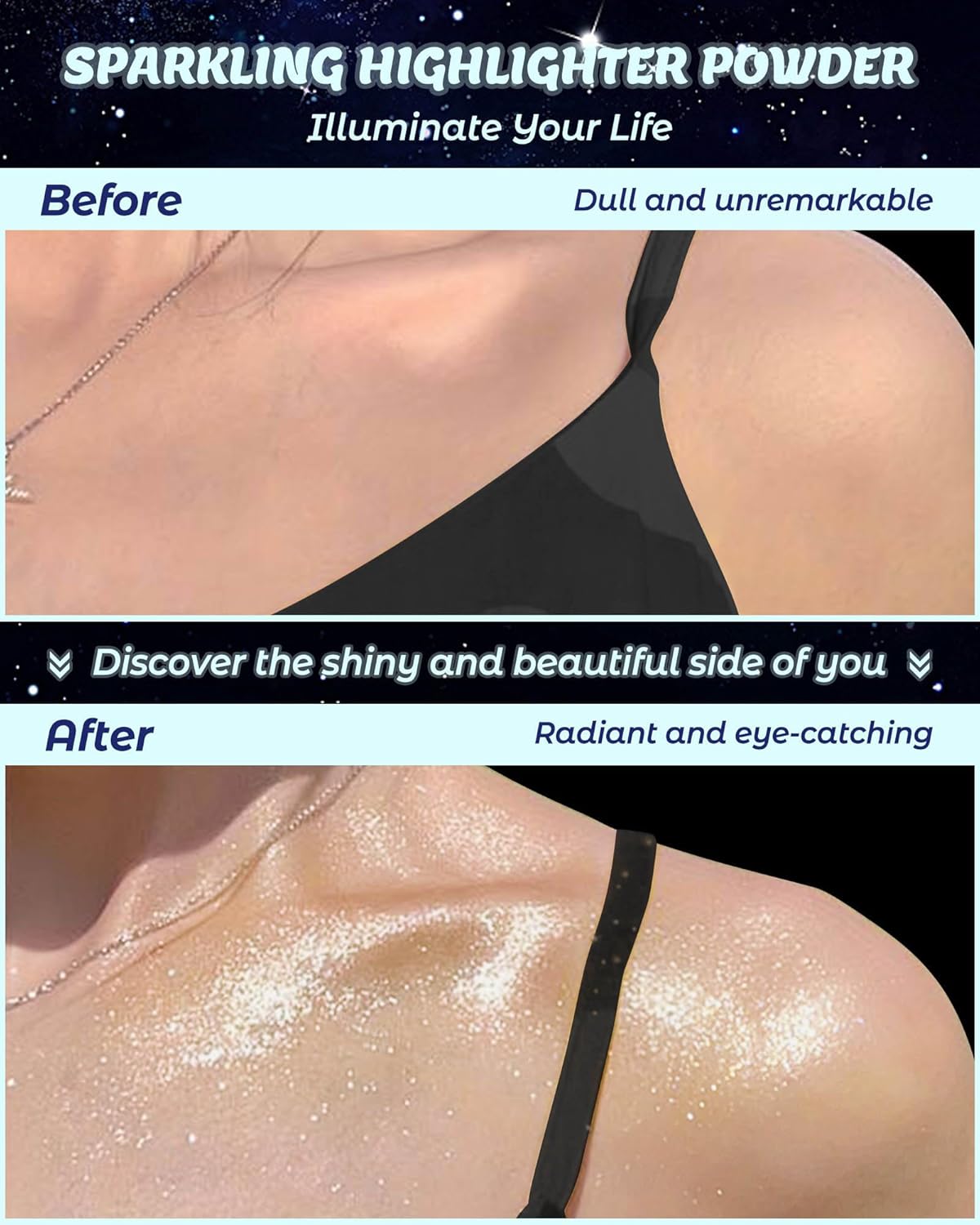 - Elevate Your Glow: Our Glitter Air Cushion Highlighter Powder adds stunning shimmer to your face, eyes, body, hair, and even clothing. Perfect for everyday wear and special occasions, it takes your makeup to the next level, ensuring you stand out in the crowd with a radiant, flawless glow