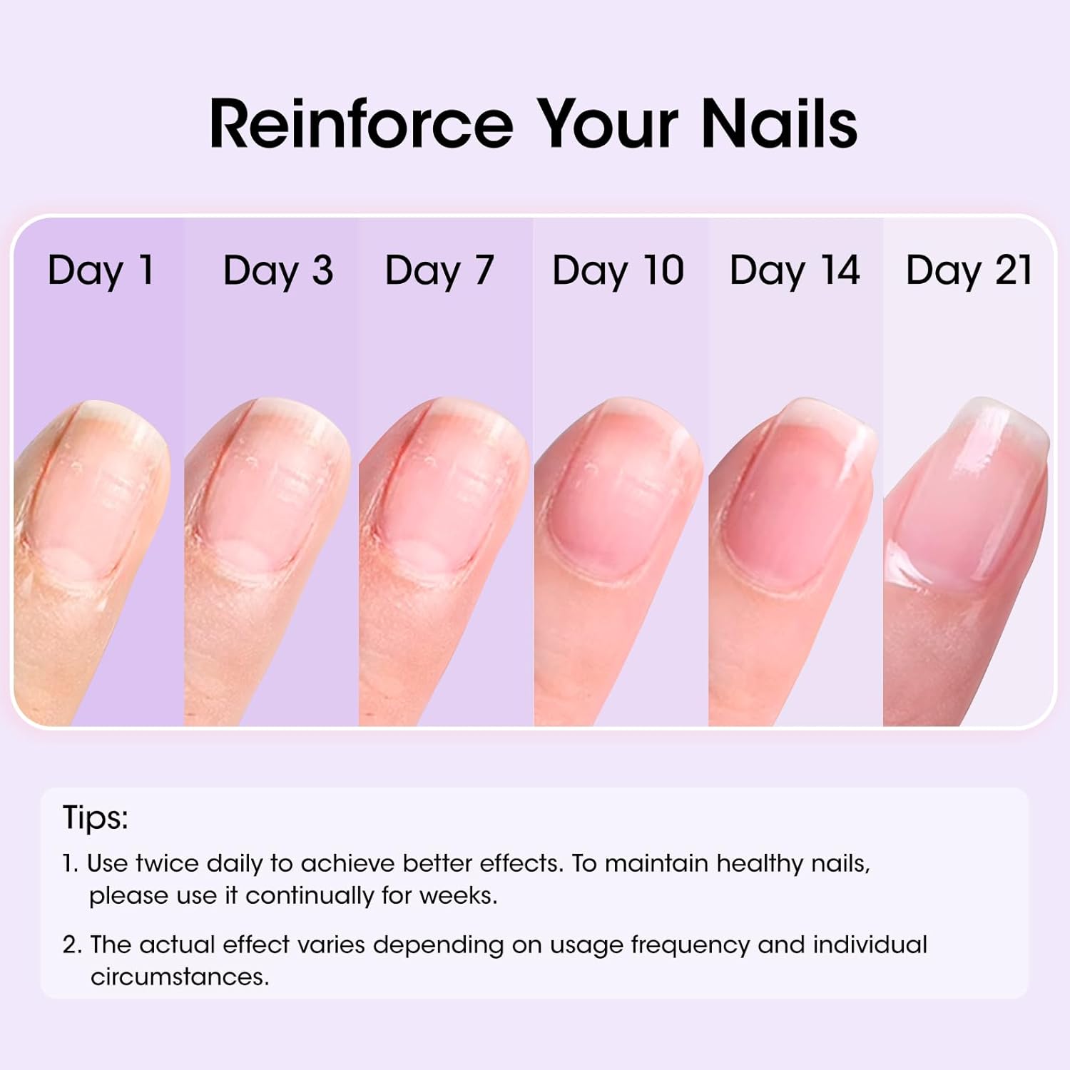 - Multifunction Natural Nail Strengthener & Growth Treatment: Our innovative nail strengthener - daily care treatment adopts multi-polymer technology to promote damaged nail repair, growth, nourishment, and strengthening nails, which is the perfect solution for damaged nails. Ideal for thin, brittle, or split nails, it leaves them with a healthy, natural glow and the confidence of salon-worthy results, and gets healthier, harder, longer nails with noticeable improvement and lasting protection in 7+ days. LAVENDER SCENTED