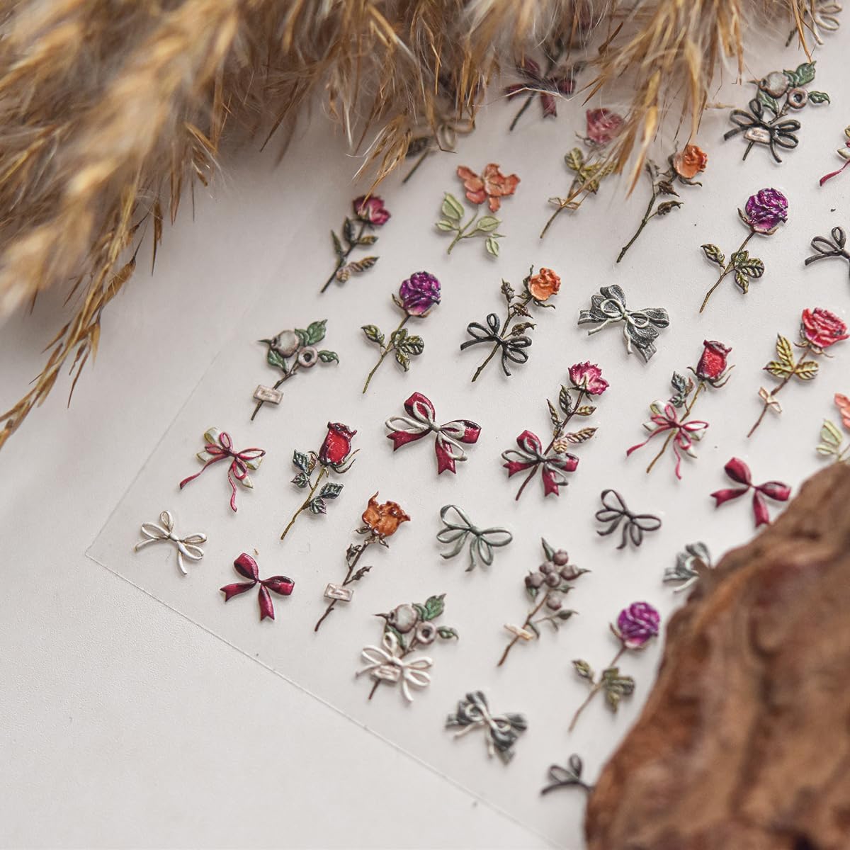 - Exquisite Design: The rose nail art stickers adopt a unique three-dimensional bump effect to make patterns more realistic.You could create you own style using these spring summer nail stickers