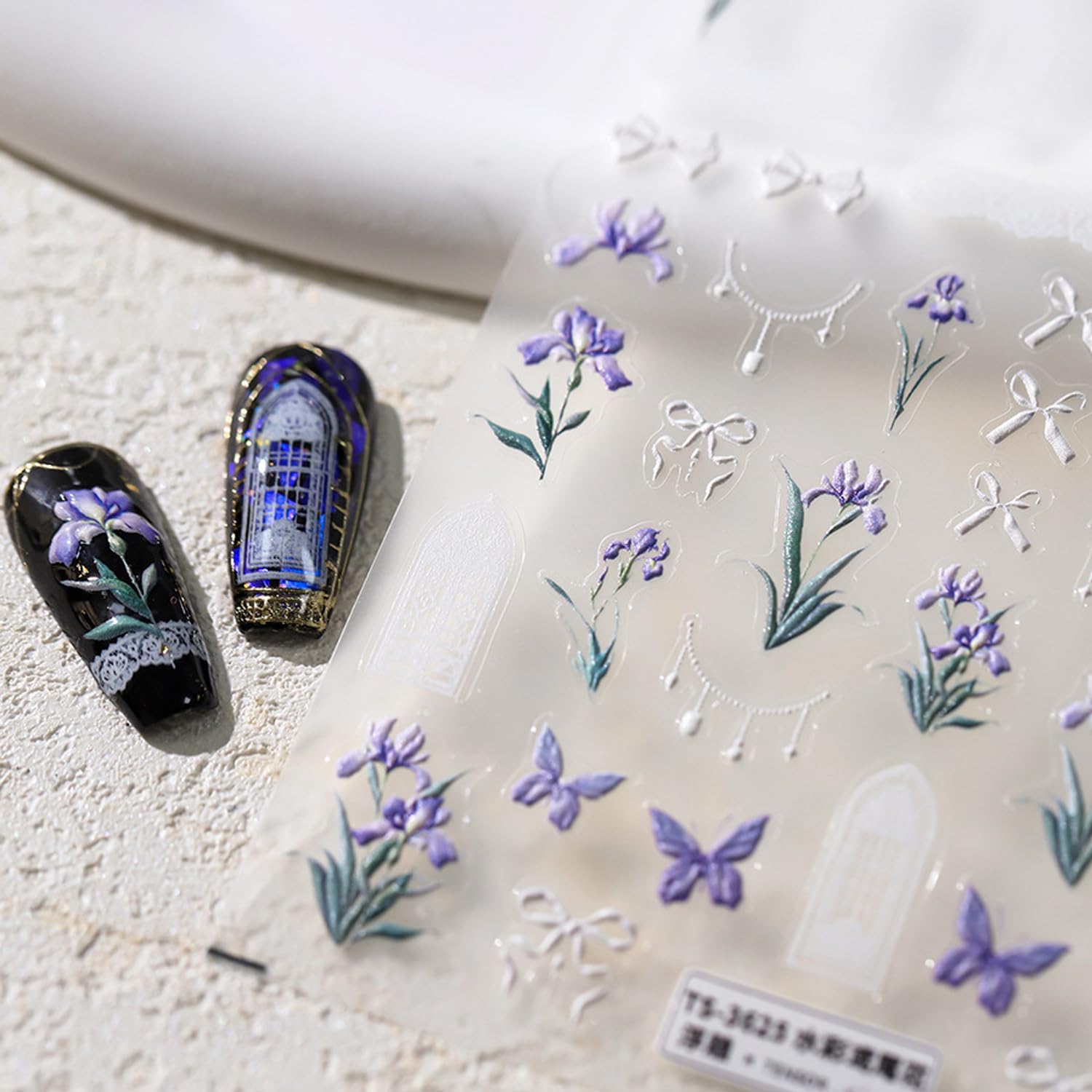 • Attractive Floral Nail Decals: 1 sheets of 5D embossing flower nail stickers, give you an advanced exquisite feeling. Iris floral bow plants elements nail decals, cute and beautiful carving patterns designs, suitable for your spring summer nail decorations