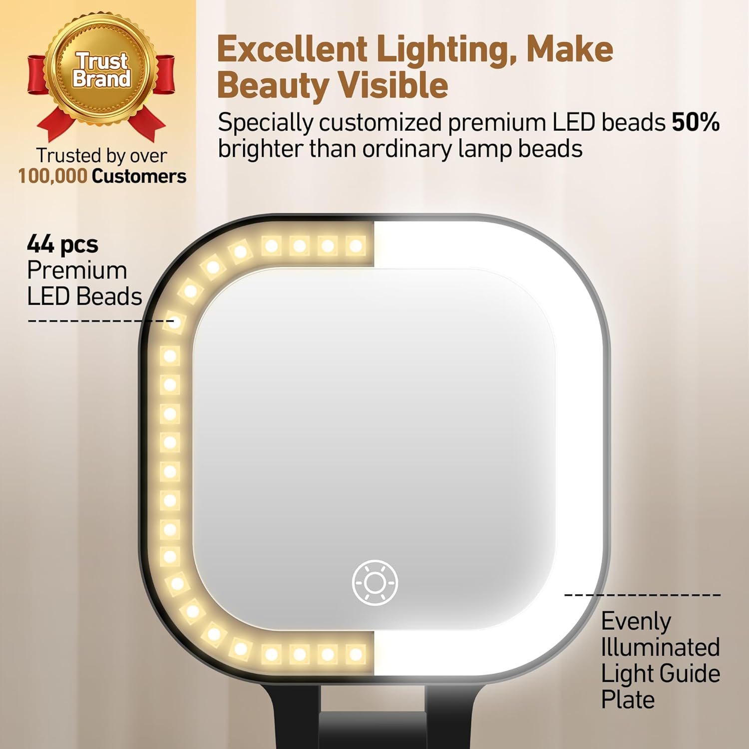 - 3 Color Light Modes & Stepless Brightness: This travel magnifying makeup mirror has built-in 44 high-brightness LED lamp beads, providing 3 colors and brightness adjustment. Short press the sensor switch to change the color and long press to adjust the brightness.meet all your needs in different environments