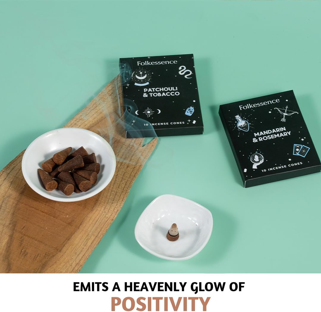 Folkulture Incense Cone Scented | Set of 2 Inscents-Cones (20 Cones) | Mandarin and Rosemary, Tobacco & Patchouli | Variety Pack Insence Cone for Relaxation and Meditation | Insenses for Home
