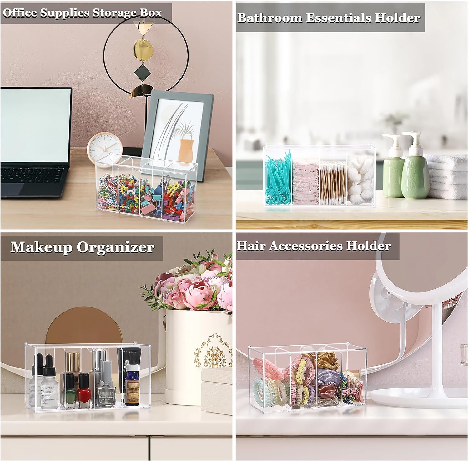 ELLDOO Lash Extension Organizer Box with Lid, Acrylic Eyelash Supplies Organizer Storage Box, 4 Compartments Bathroom Supplies Storage Container for Cotton Swabs, Balls, Pads, Floss Picks