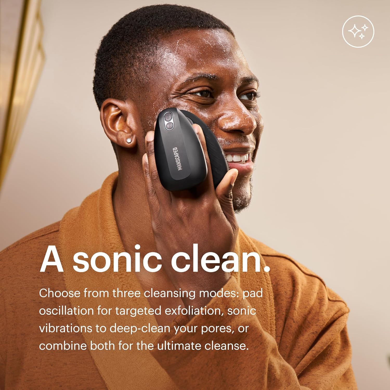MANSCAPED® The Face Buffer PRO - Men's Electric Silicone Face Scrubber for Nourishing, Deep Cleaning & Exfoliating Your Skin, 3 Facial Cleansing Modes & 2 Sonic Vibration Speeds, Travel Lock