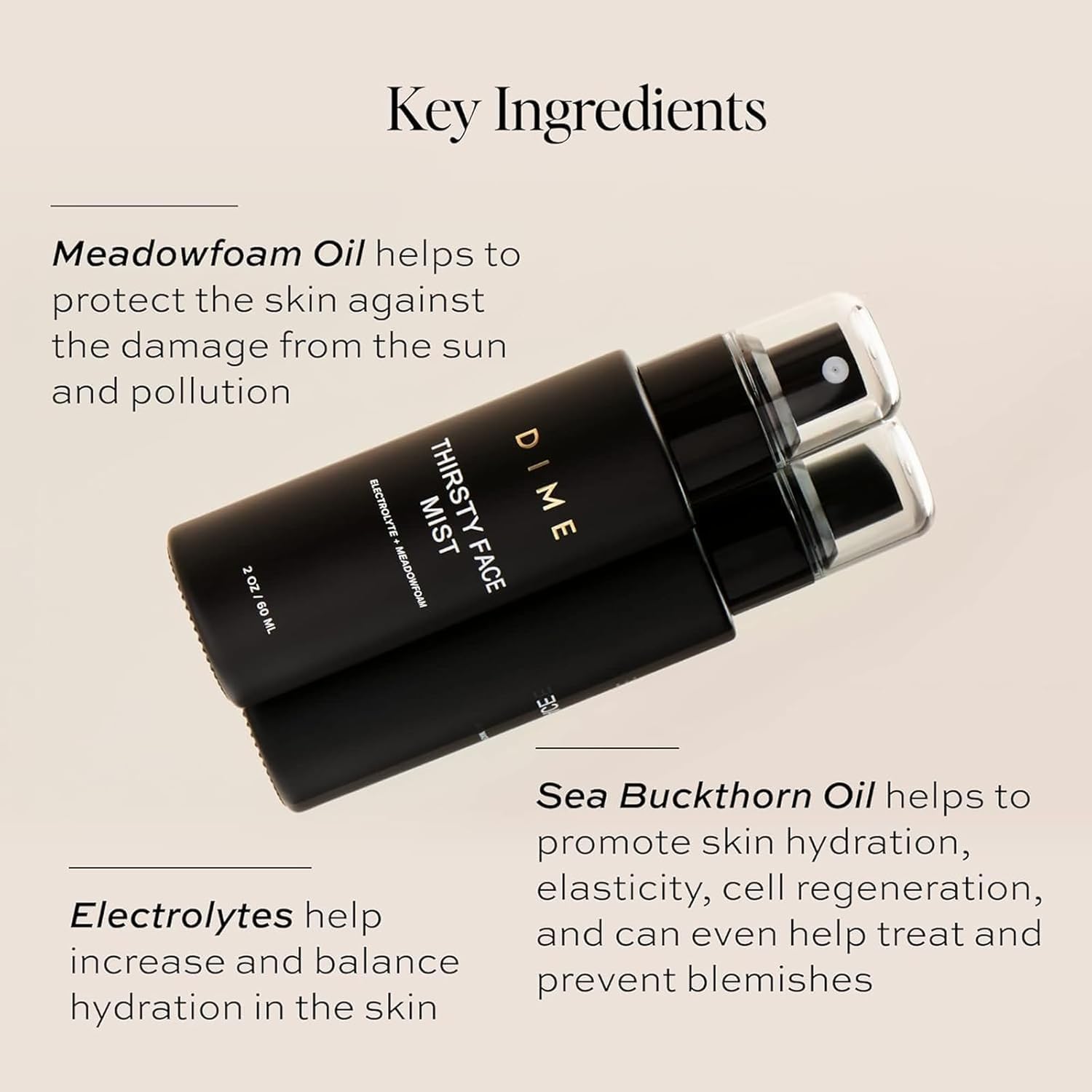 Dime Beauty Thirsty Face Mist with Electrolytes, Meadowfoam, and Sea Buckthorn, Hydrating Facial Spray, 2 oz / 60 ml