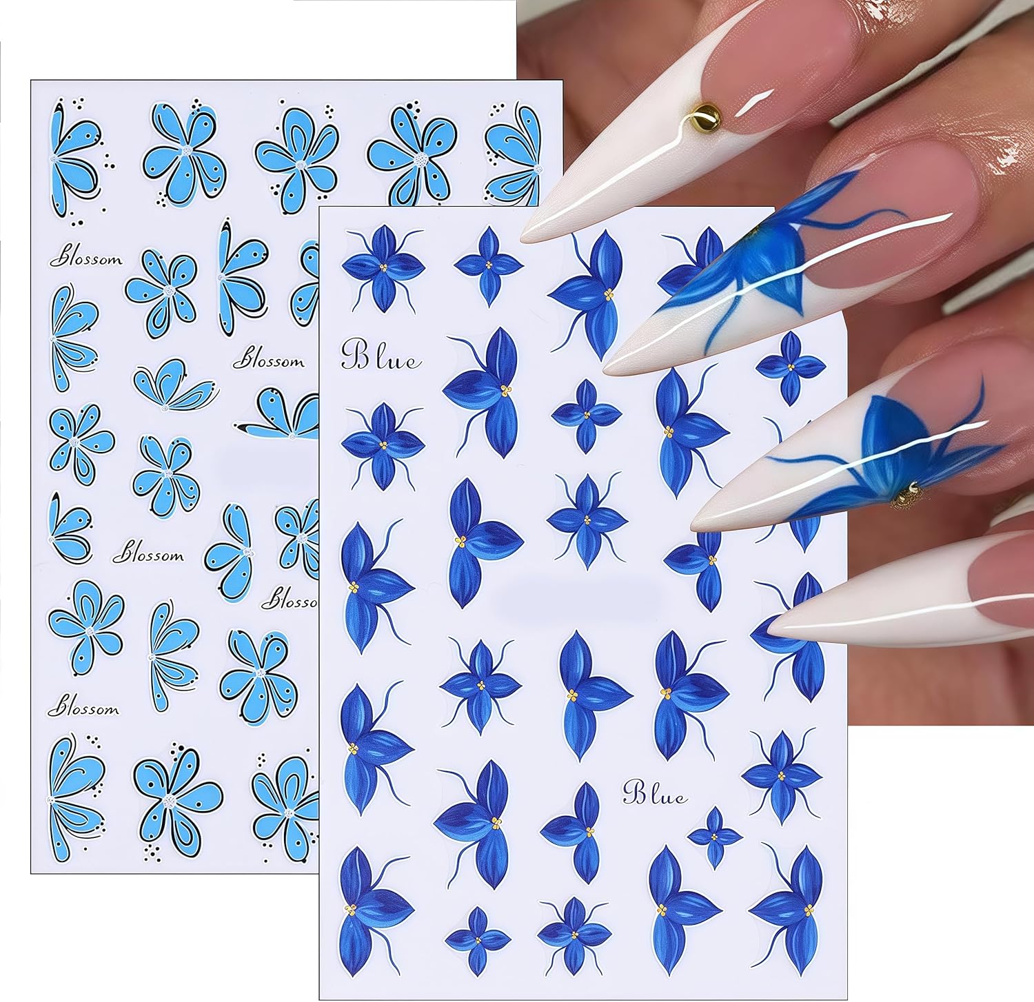 - Safety Material:Blue flower design nail decoration are made of safe friendly materials, not limited to any nail style, you can use it safely ur nails, enjoy the feeling of nail art
