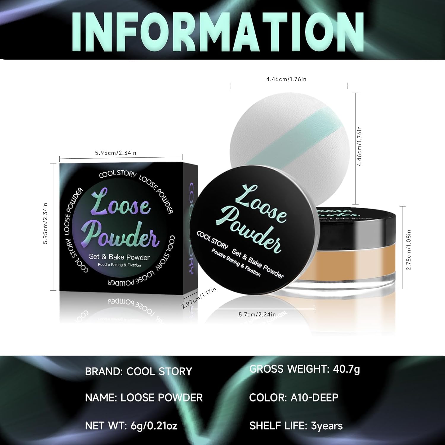 Loose Setting Powder, Bake Makeup Powder Full Coverage Matte Finish (Deep, 6g/O.21oz)