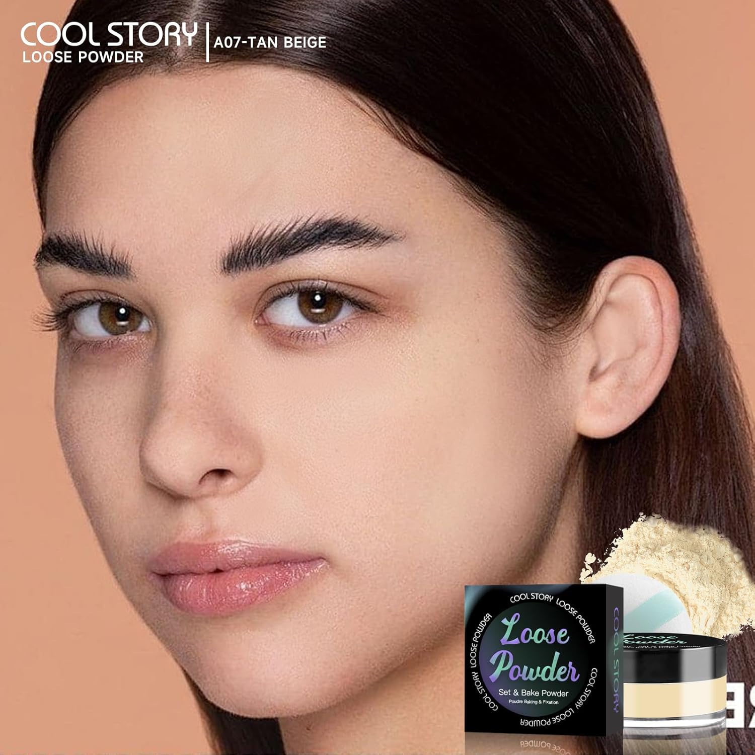 Loose Setting Powder, Bake Makeup Powder Full Coverage Matte Finish (Tan Beige, 6g/O.21oz)
