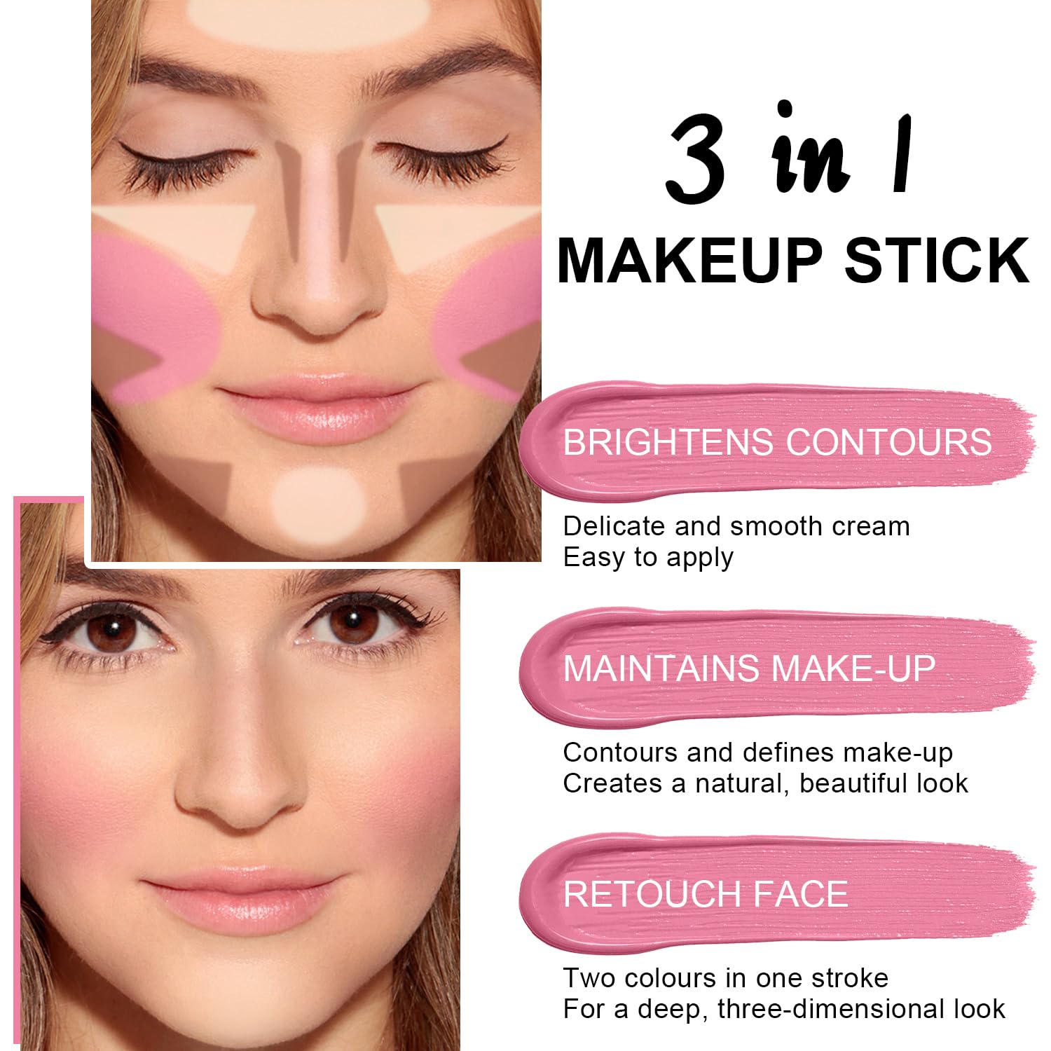 - 【All-in-One Contour Kit for Beginners & Pros】This 6-color cream contour stick makeup kit includes everything you need: double-ended cream bronzer, highlighter, and blush sticks in blendable shades. Perfect for sculpting cheekbones, defining jawlines, and adding natural flush—ideal for creating professional 3D effects with minimal effort!