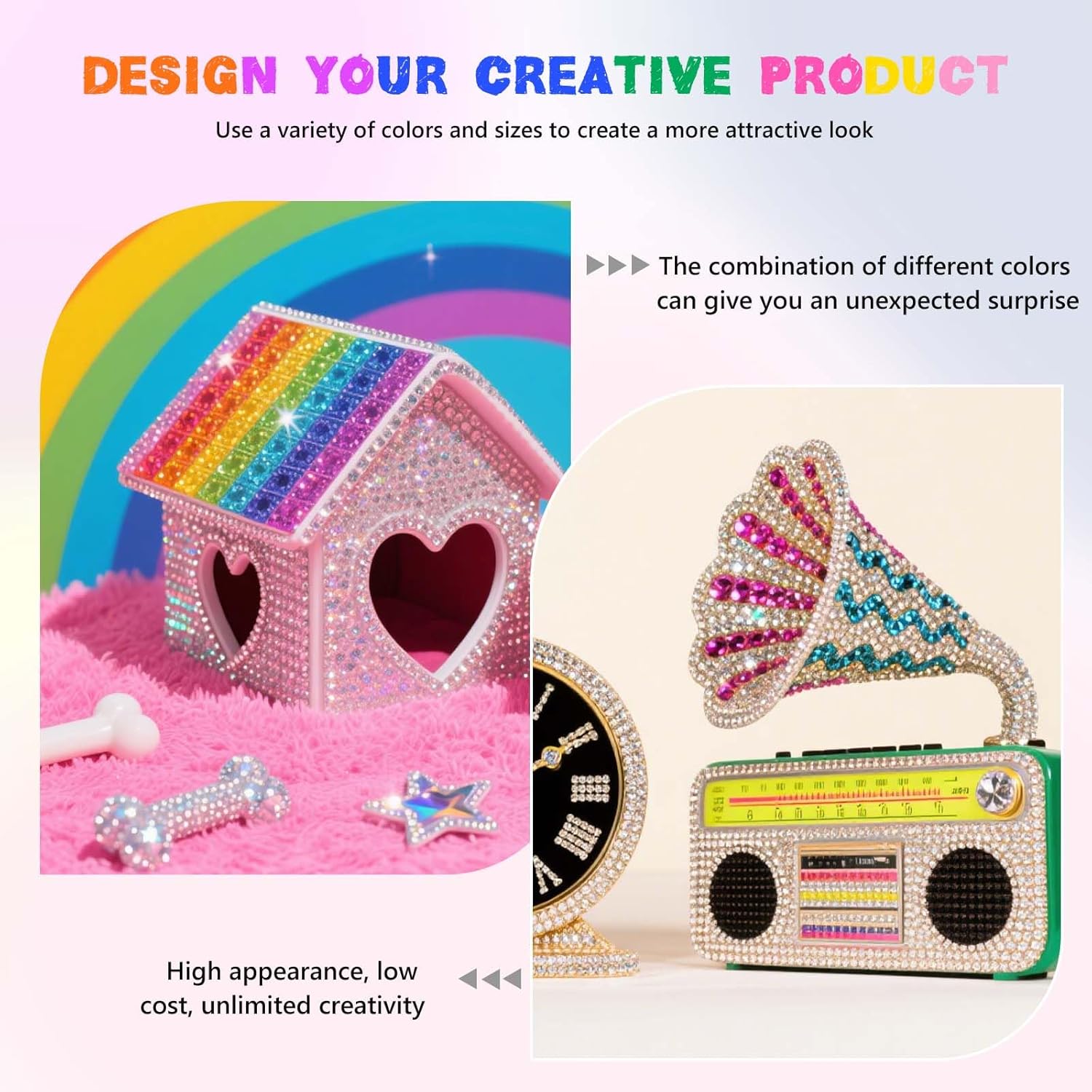 - Vibrant gems: These crystals are made of resin material and contain some jelly-colored rhinestones. The delicate luster and exquisite, shining cutting surface will make your handicrafts more dazzling