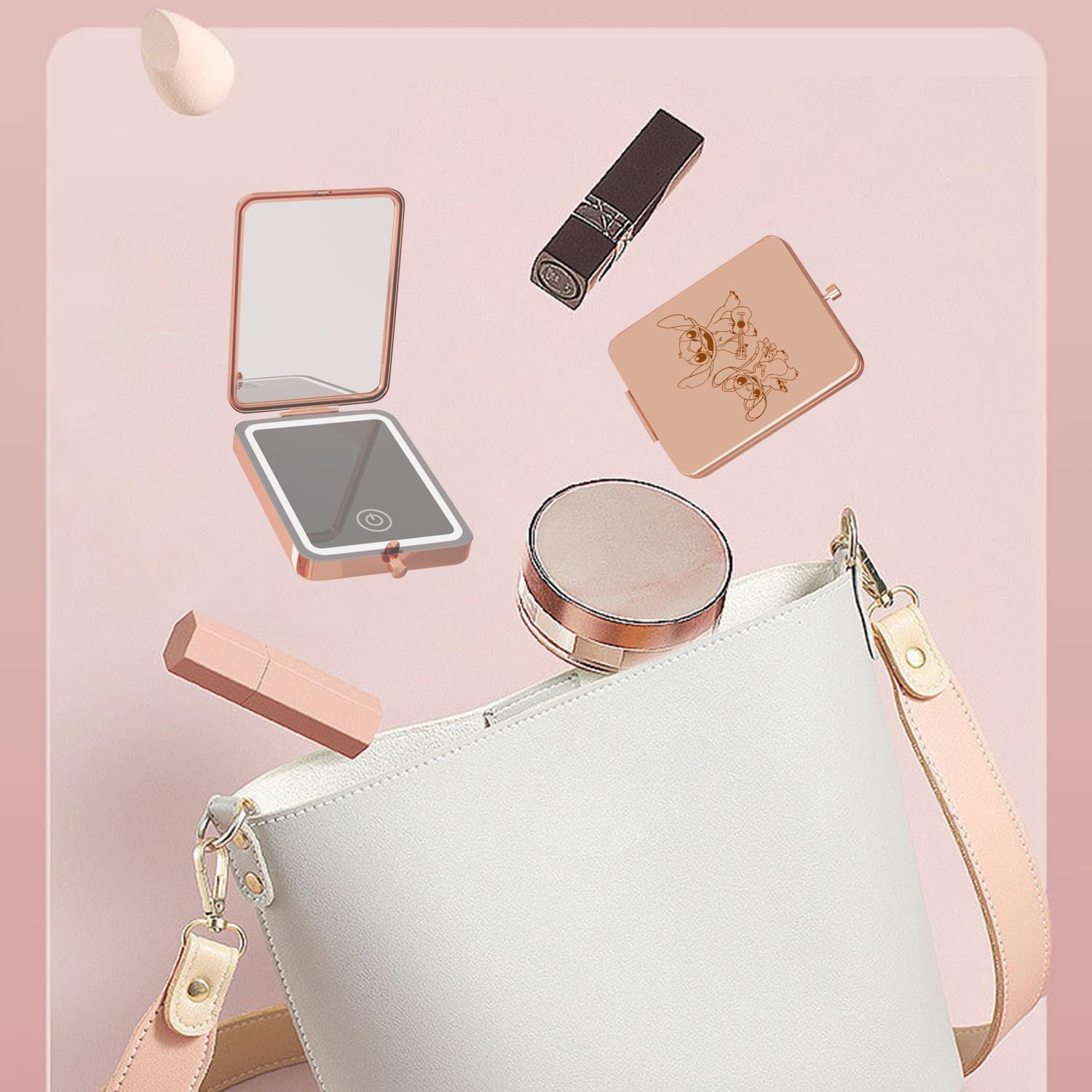 Vanity Mirror with Lights, 3X Magnifying LED Compact Travel Mirrors for Pocket,Purse, Double-Sided Foldable Handheld,Makeup Mirror with Lights, Gifts for Women, Stitch Accessory